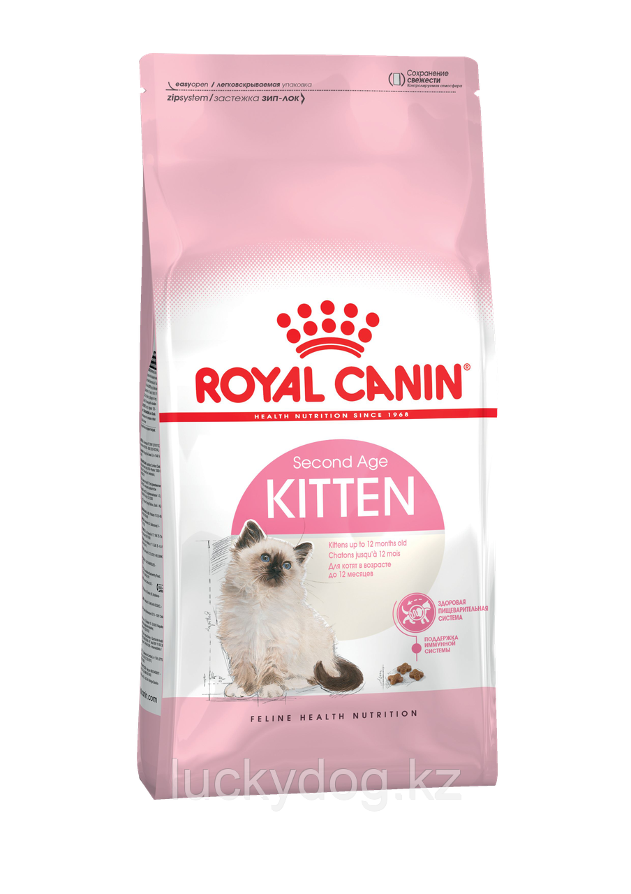 Корм ROYAL CANIN® Kitten предназначен для котят в возрасте до 12 месяцев и обладает повышенной усвояемостью благодаря высококачественным (усваиваются на 90%) белкам L.I.P.