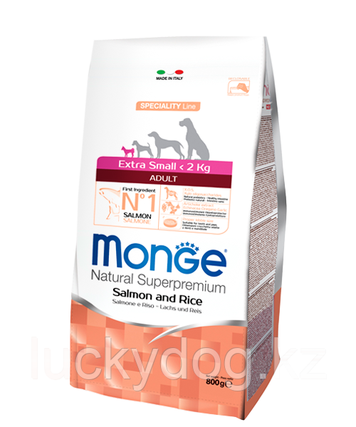 Monge Extra Small 800г С Лососем и рисом Сухой корм для взрослых собак миниатюрных пород Dog Adult Salmone